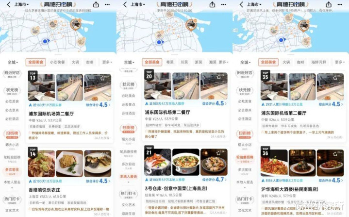 在外界看来,高德地图的这一举措意在对标大众点评。而高德官宣“扫街榜”上线后,不少讨论相关话题的文章也将“扫街榜”比作终结“刷好评”现象的利器,大有整治行业乱象的意味。