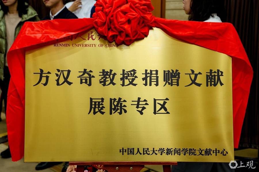 中国人民大学新闻学院文献中心方汉奇藏书捐赠专区揭牌。